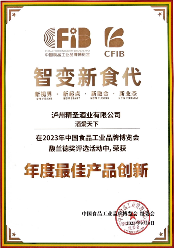 瀘州精圣酒業(yè)有限公司出品的“精圣”牌酒愛天下·禮品酒,具有諸香渾然添陳、內(nèi)斂渾厚飽滿、韻味甘綿雅凈,聞著香、喝著順、飲后心曠神怡的內(nèi)在品質(zhì),以及銀裝素雅剔透、生態(tài)玉白韻綠的外在裝潢,在此次展會中以其“蓋世酒仙、內(nèi)外兼修”的產(chǎn)品魅力優(yōu)勢脫穎而出,獲得馥蘭德獎(jiǎng)2023年度產(chǎn)品創(chuàng)新獎(jiǎng)。